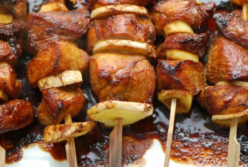 - Placer les dés de poulet sur une brochette et faire cuire sur au barbecue ou au four 7 à 10 min en les retournant régulièrement